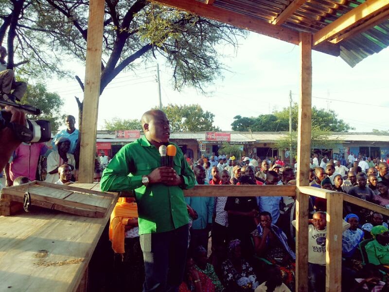 Mwenyekiti wa Vijana mkoa wa Simiyu na MNEC wa Itilima Ndugu Njalu Silanga akihutubia wakazi wa wilaya ya Meatu na kuwahakikishia wananchi hao CCM imejipanga kuendelea kuleta maendeleo ya nchini.